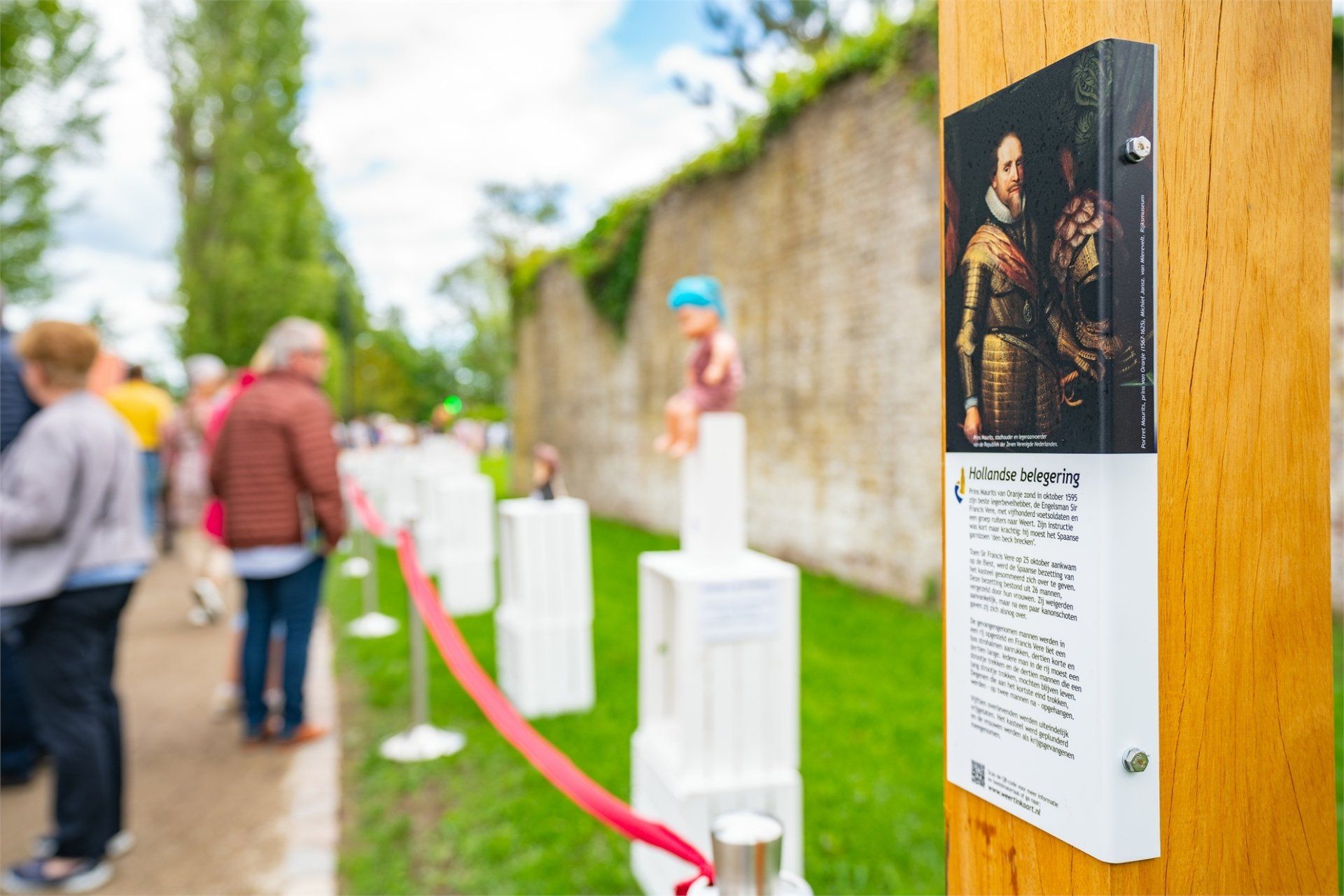 De voorhof, het pleingedeelte van het nieuwe park, was het decor van verschillende levende standbeelden, met elk een verwijzing naar lokale historie of een herkenbare invulling van een stadspark.