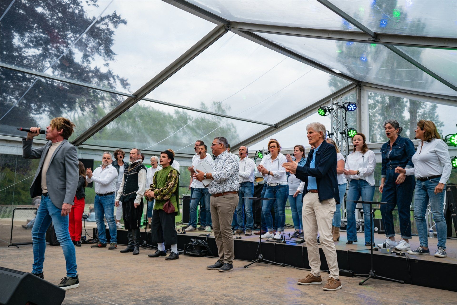 Maandagavond was het, na een dag uitstel vanwege slecht weer, de beurt aan Stichting Wieërt Amezieërtj. In een prachtige samenwerking met The Ray Stabbing Singers en diverse bekende Weerter artiesten werd een muzikaal verhaal, op maat geschreven over de historie van Kasteelpark Nijenborgh, gepresenteerd. Dat het avondprogramma was verplaatst bleek een goede keuze, want het aanwezige publiek genoot tijdens de prima zomeravond vervolgens nog van Turnback & The Blazing Babes en de spectaculaire vuurshow Finale de Feu. Als werkelijke finale vormde de naam van het park in brandende letters een fotomoment dat menigeen aangreep voor mooi kiekje.